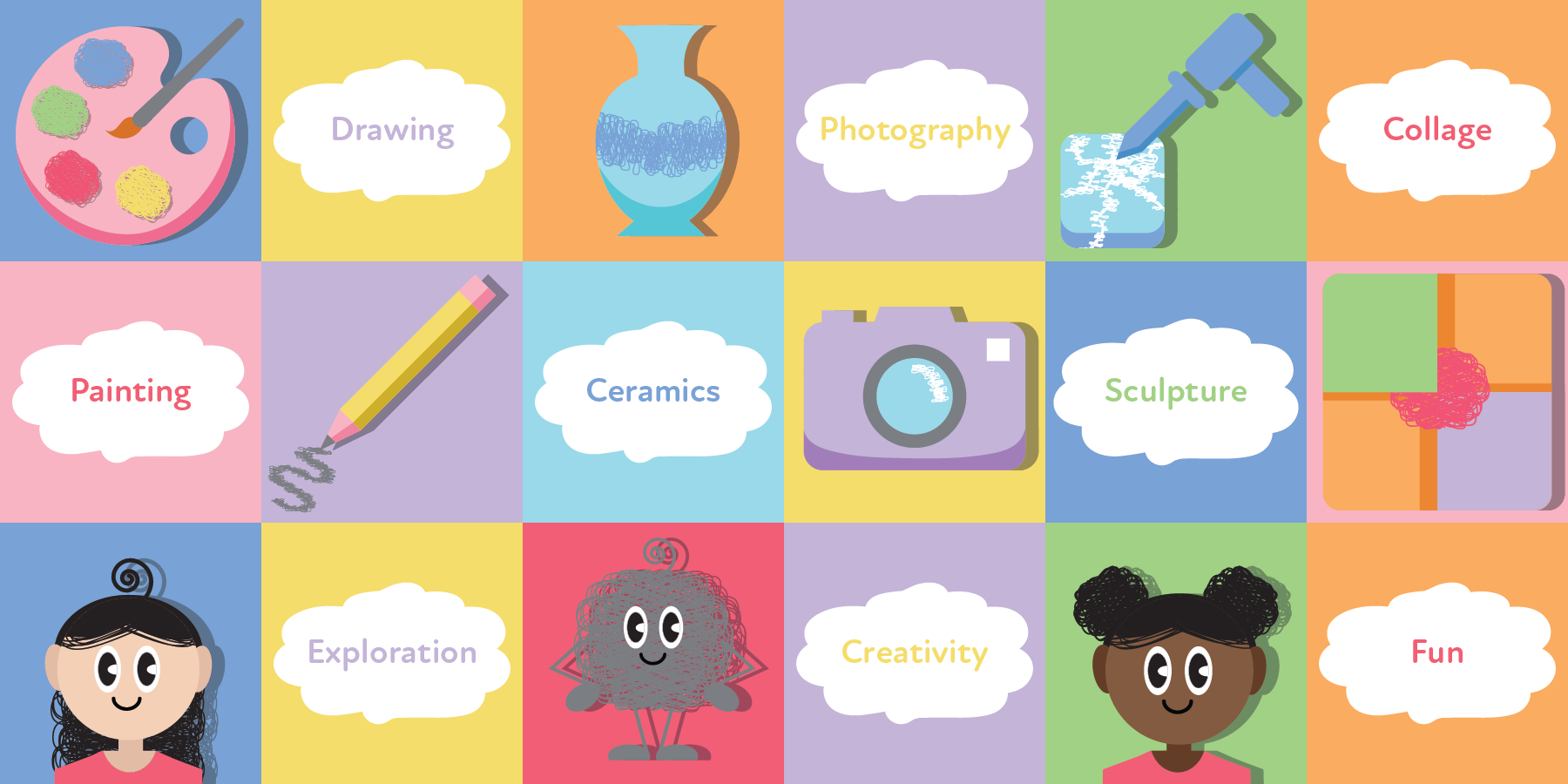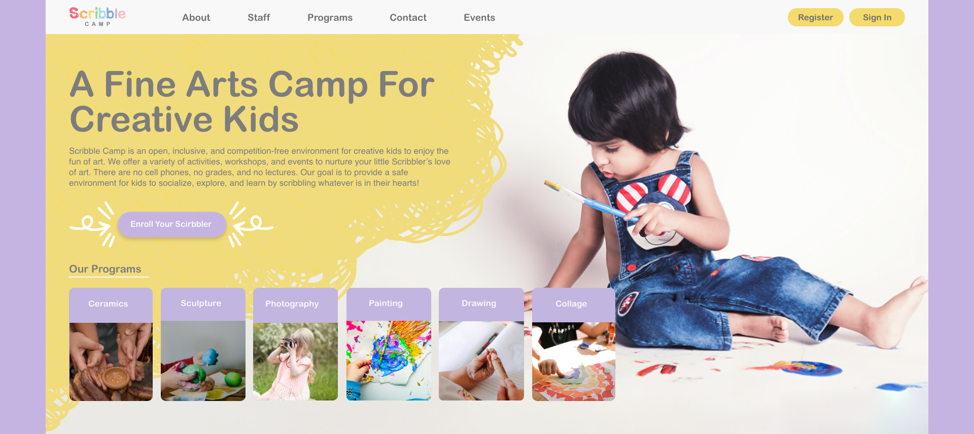 Scribble Camp is an open, inclusive, and competition-free fine arts camp for creative kids. This branding system is fun and playful and utilizes a pastel rainbow color palette to reiterate the open and inclusiveness of the camp's values.